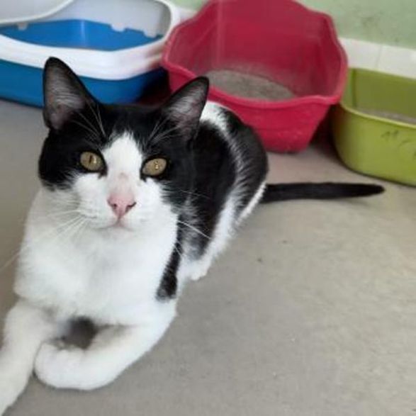 Connan haben unsere spanischen Kollegen als Notfall von einem anderen Tierheim übernommen, das überfüllt war und Aufnahmestopp hatte. Der ca. 2022 geborene Kater muss auf der Straße viel gelitten haben, denn er hatte einige Wunden und eine große Läsion am rechten Ohr. Vermutlich liegt es daran, dass Connan kein Raufbold ist, sondern ein sehr ruhiger und verträglicher Kater, der Konflikten mit anderen Katzen lieber aus dem Weg geht.  Im Tierheim sucht er gerne die Nähe seiner Pfleger, er ist sehr menschenbezogen und lieb.