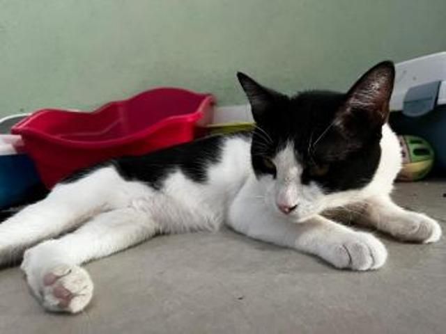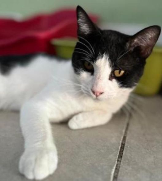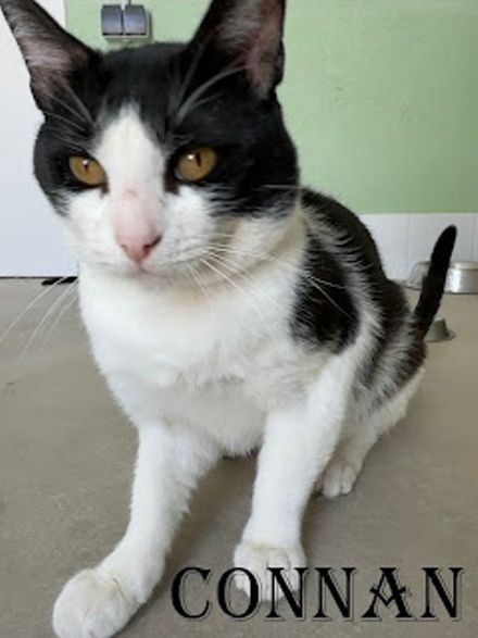 Connan haben unsere spanischen Kollegen als Notfall von einem anderen Tierheim übernommen, das überfüllt war und Aufnahmestopp hatte. Der ca. 2022 geborene Kater muss auf der Straße viel gelitten haben, denn er hatte einige Wunden und eine große Läsion am rechten Ohr. Vermutlich liegt es daran, dass Connan kein Raufbold ist, sondern ein sehr ruhiger und verträglicher Kater, der Konflikten mit anderen Katzen lieber aus dem Weg geht.  Im Tierheim sucht er gerne die Nähe seiner Pfleger, er ist sehr menschenbezogen und lieb.