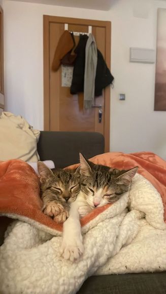 Dies Schwestern sind auf FeLV/FIV negativ getestet, befinden sich im Impfvorgang, sind aber altersgemäß noch nicht kastriert.