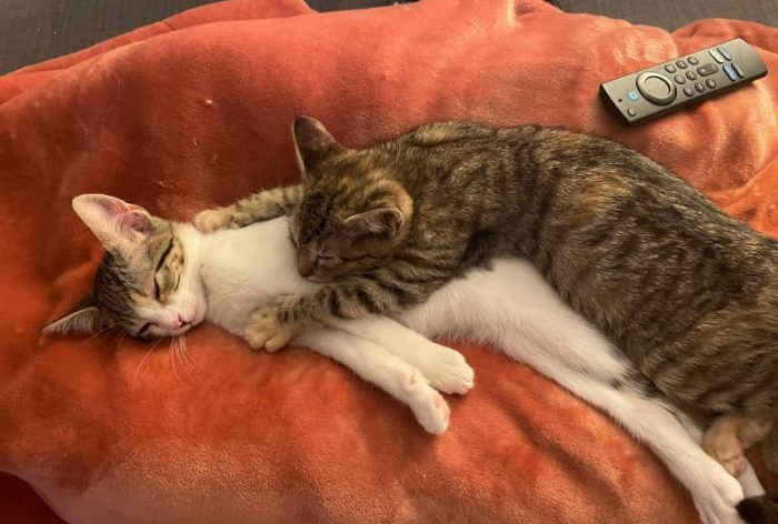 Vom Wesen her sind sie wie andere Katzenkinder auch, verspielt, sie toben und raufen und sind glücklich mit der Pflegemama.