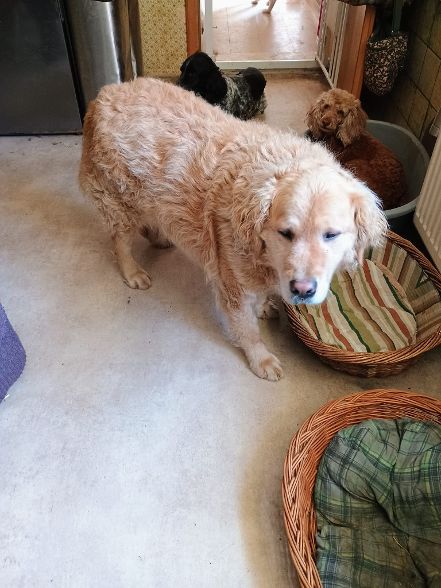 GOGI – auf PS in 97239 Aub: Golden Retriever-Rüde GOGI, geb. 2017, ist verträglich mit Hunden, Katzen u Hühnern. Ein sanfter Familienhund, verschmust, freundlich und sehr anhänglich.