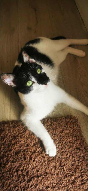 Er ist reine Wohnungskatze, sehr verschmust, sehr verspielt, sehr kinderaraffin und mag auch auch Hunde ganz doll.