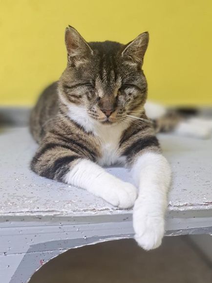 Mit den anderen Katzen hier verstehe ich mich nicht. Wir kommen aneinander vorbei, wenn sich mir einer nähert dann schimpfe ich ihn weg, aber ich suche auf jeden Fall keinen Kontakt. Ich bin eher gestresst, wenn ich in Kontakt mit den anderen komme.