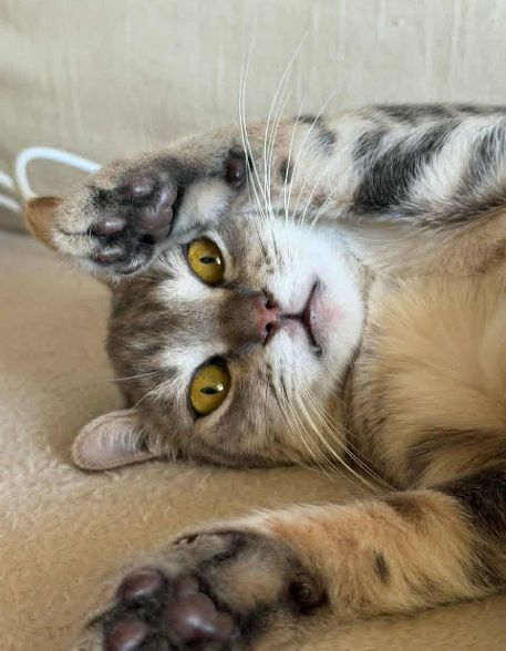 Ella, erkennbar an ihren orangegelben oder auch sonnengelben Augen, die an die Farbe von Gold oder Bernstein erinnern, und Lemour2, dessen Augen einen blassgelben grünstichigen Farbton haben, leben seit 21.10.2025 auf Pflegestelle in Deutschland. Ursprünglich stammen sie aus Zypern.
