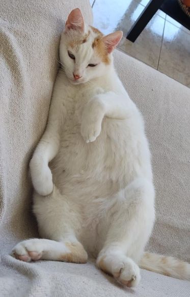 Er versteht sich sehr gut mit anderen Katzen, er versucht niemals zu kämpfen. Bei Menschen fordert er ständig Streicheleinheiten ein und liebt es im Bett oder auf dem Sofa zu schlafen. Hauptsache es gibt ein weiches Kissen oder eine kuschelige Decke. Außerdem liebt er es, an seinem Bauch zu schnuppern.