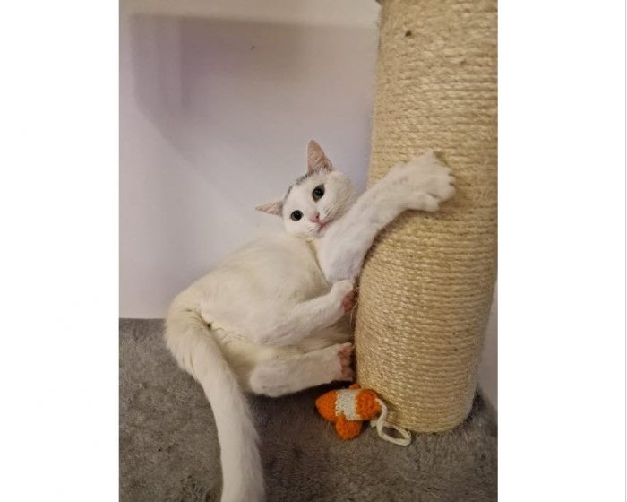 Nika liebt es zu spielen. Am liebsten mit Katzenangeln oder Spielzeug mit Fäden, Bällen und kleinen Spielzeugmäusen.