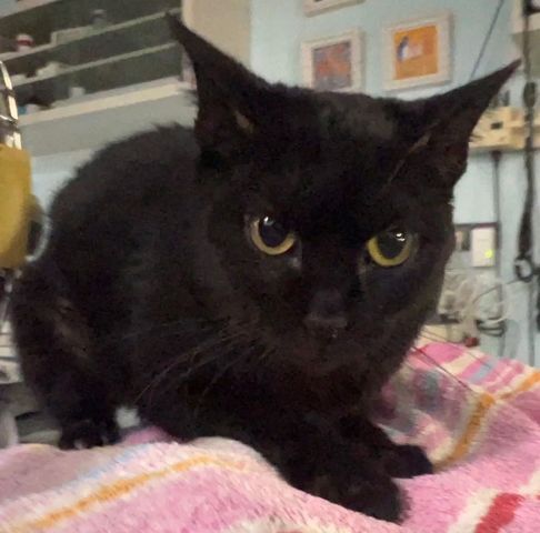 Unsere Carrie wurde ungefähr im Mai 2022 in Spanien geboren. Ihr Fell ist schwarz, ihre weißen Barthaare bilden einen schön anzusehenden Kontrast dazu und sie hat wunderschöne bernsteinfarbene Augen. Carries Mutter lebte in einer Katzenkolonie, um die sich Freiwillige kümmern. Kurz nach ihrer Geburt erkrankte Carrie; man versuchte ihr zu helfen, indem man immer wieder ihre Augen und ihre Nase säuberte, aber leider genügte das nicht und Carries Augen und Nasenlöcher waren ständig verstopft. Ihr Zustand verschlechterte sich beständig und sie konnte kaum fressen, daher wurde sie zu einem Tierarzt gebracht. Dieser untersuchte sie und bedauerlicherweise wurde festgestellt, dass Carrie an FIV erkrankt ist. Weil Carrie neurologische Symptome aufwies und eine gelbliche Haut hatte, wurden weitere Untersuchungen gemacht. Es stellte sich heraus, dass sie eine geschwollene Leber und eine vergrößerte Milz hatte und unter Verstopfung litt. Daraufhin wurde sie mit einer Leberdiät behandelt.