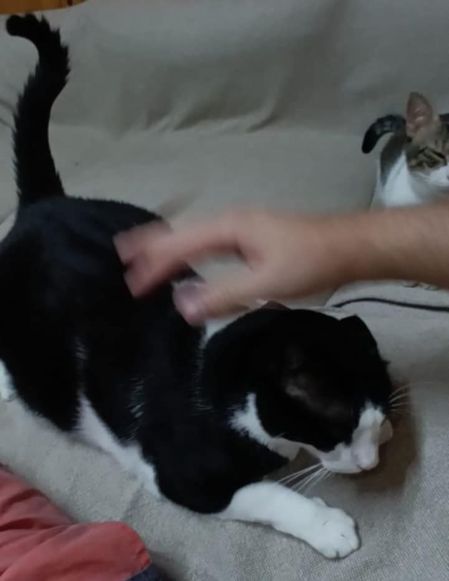 Zurück bei Natalia, seiner ersten Pflegestelle, war er wieder ganz der Alte. Freundlich zu Menschen und Katzen und super verspielt. Er wird gerne gestreichelt, sitzt auf dem Schoß und legt sich auf den Bauch seiner Menschen, wenn sie im Bett liegen.