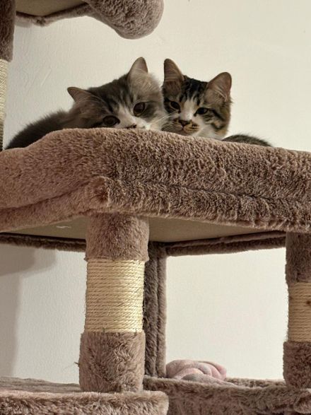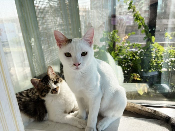 Alaska selbst ist unglaublich sanft und verspielt – sie war gerade einmal 8 Monate alt, als sie gerettet wurde. Ihre Kätzchen Botswana (weiblich, schwarz-weiß) und Japengo (männlich, weiß mit schwarzen/braunen Flecken) sind ebenfalls freundlich, neugierig und verspielt. Die drei sind ein eng verbundenes Trio und möchten zusammenbleiben.