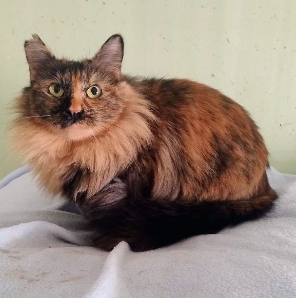 Amber ist ein langhaariges Schildpattkätzchen, geboren etwa im April 2024. Ihre Geschichte beginnt in Spanien, auf einem verlassenen, unbebauten Grundstück mitten im Zentrum der Stadt Jaén. Dort wurde Amber geboren und verlor schon früh ihre Mutter. Nur dank einer aufmerksamen Nachbarin, die sie regelmäßig fütterte, konnte sie auf der Straße überleben. Als ihre Retter sie fanden, wurde sie bereits von anderen Katzen gejagt und hatte sich in ihrer Angst gefährlich nah an die Straße gewagt und wäre fast überfahren worden. Glücklicherweise konnten sie rechtzeitig eingreifen und Amber in Sicherheit bringen.