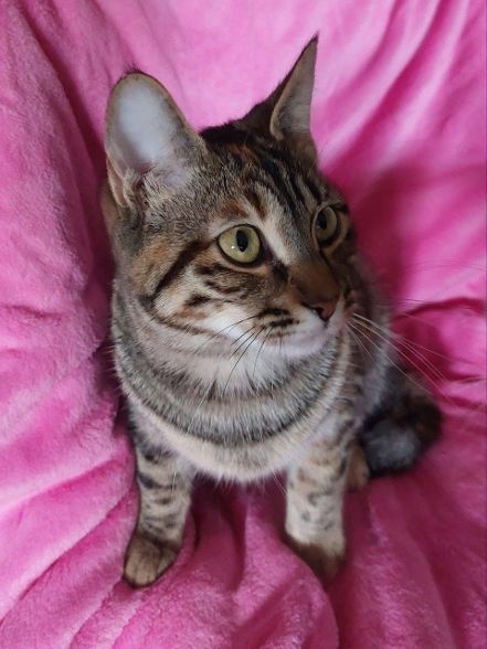 Sehr liebe, verschmuste Katzendame, die als Kitten auf der Straße gefunden und mit der Flasche aufgezogen wurde. Deshalb ist ihre Bindung zu Menschen sehr eng, aber sie liebt auch andere Katzen und braucht unbedingt einen etwas gleichalten Katzenfreund. Hunde und Kleinkinder kennt sie nicht.