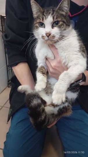 Es handelt sich um eine ehemalige Strassenkatze in Athen/Griechenland, die von einem Auto angefahren wurde. Dies hatte zur Folge, dass sie keine Pfote an ihrem Vorderbein hat, was sie jedoch nicht daran hindert, wenn auch hinkend, zu laufen. Jedoch wurde die Katze im Krankenhaus positiv auf FIV getestet.