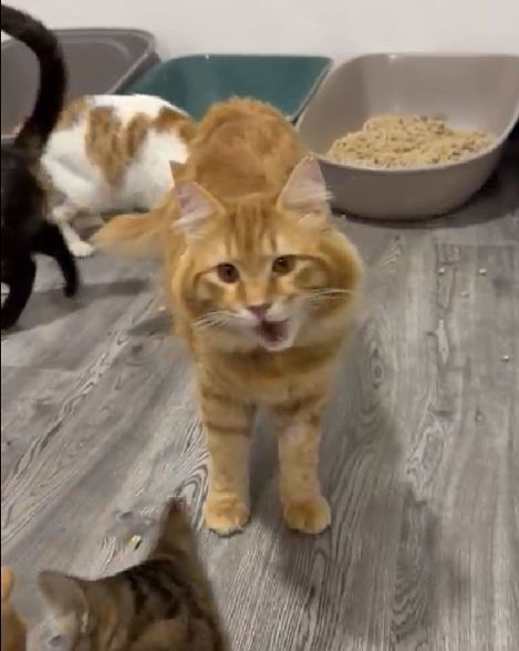 Carrot war nur einer von vielen. Da keine Pflegestelle Platz für ihn hatte, wurde er schon im Alter von 4 Monaten zusammen mit anderen Katzen in einem extra hierfür angemieteten Raum untergebracht. Zwar kommt regelmäßig jemand zur Versorgung vorbei doch ein richtiges Zusammenleben mit Menschen ist etwas anderes. Und so mag es nicht all zu sehr erstaunen, das aus einem süßen zutraulichen Kätzchen ein scheuer Bub wurde und dass überdies seine Behinderung erst vor Kurzem (Stand Ende Januar 2026), also Monate später, bemerkt wurde, da sie sich deutlicher bemerkbar machte.