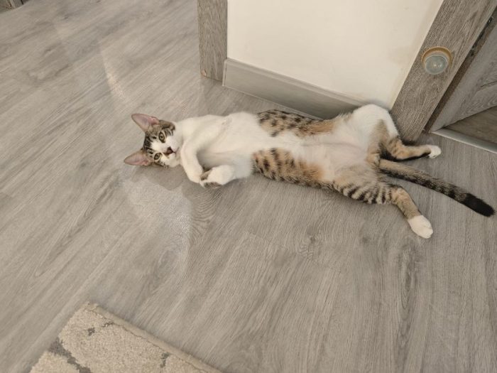 Das ist Zwergchen Esra! Sie ist ca. Ende Februar / Anfang März 2025 geboren, wurde zusammen mit ihrer Mama Cleo und ihrem Bruder Enzo auf der Straße gefunden und lebt seither auf einer liebevollen Pflegestelle in Rumänien. Dort zeigt sie sich als rundum freundliches, verspieltes und soziales Kitten, das das Leben in vollen Zügen genießt.