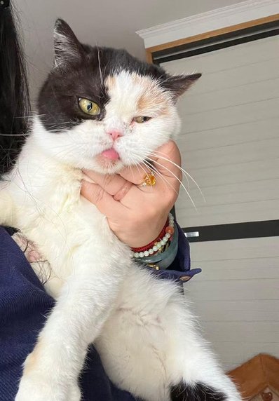 Feili ist sehr geschickt trotz ihrer Behinderung und klettert und läuft ohne Hindernisse mit ihrem starren rechten Hinterbeinchen. Sie ist eine liebe Katze und kann auch gut mit anderen Katzen und Hunden umgehen.
