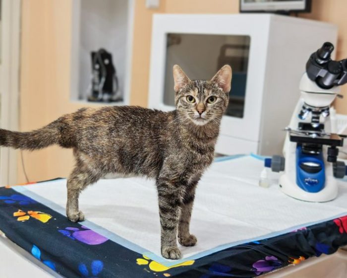 Ich renne, springe und klettere überall hin, wo ich möchte! Tatsächlich helfe ich sogar meiner Tierärztin bei der Arbeit. Du solltest also nicht denken, dass ich eingeschränkt bin. Ich bin verspielt und aktiv, liebe es, hinter zerknüllten Papieren herzurennen, stibitze Stifte und spiele damit.