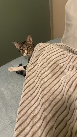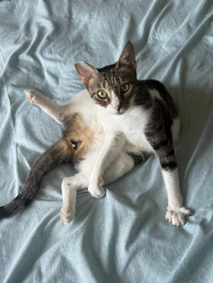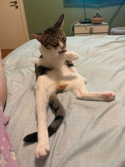 Mit einer freundlichen Zweitkatze könnte sie sich vermutlich anfreunden, aber sie war als Straßenkatze wählerisch, wen sie mochte. Bei einer Vergesellschaftung sollte man ihr also Zeit geben und genau auf ihre Reaktionen achten.