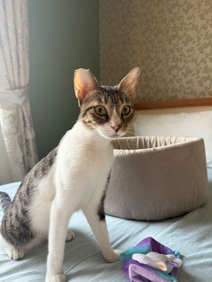 Serena ist eine junge, lebhafte Katze, die das Leben in vollen Zügen genießt. Sie wurde von einem Pferdestall gerettet, wo sie auf der Suche nach Futter und Sicherheit war. Heute ist sie in Sicherheit und bereit, ihr eigenes Zuhause zu erobern.